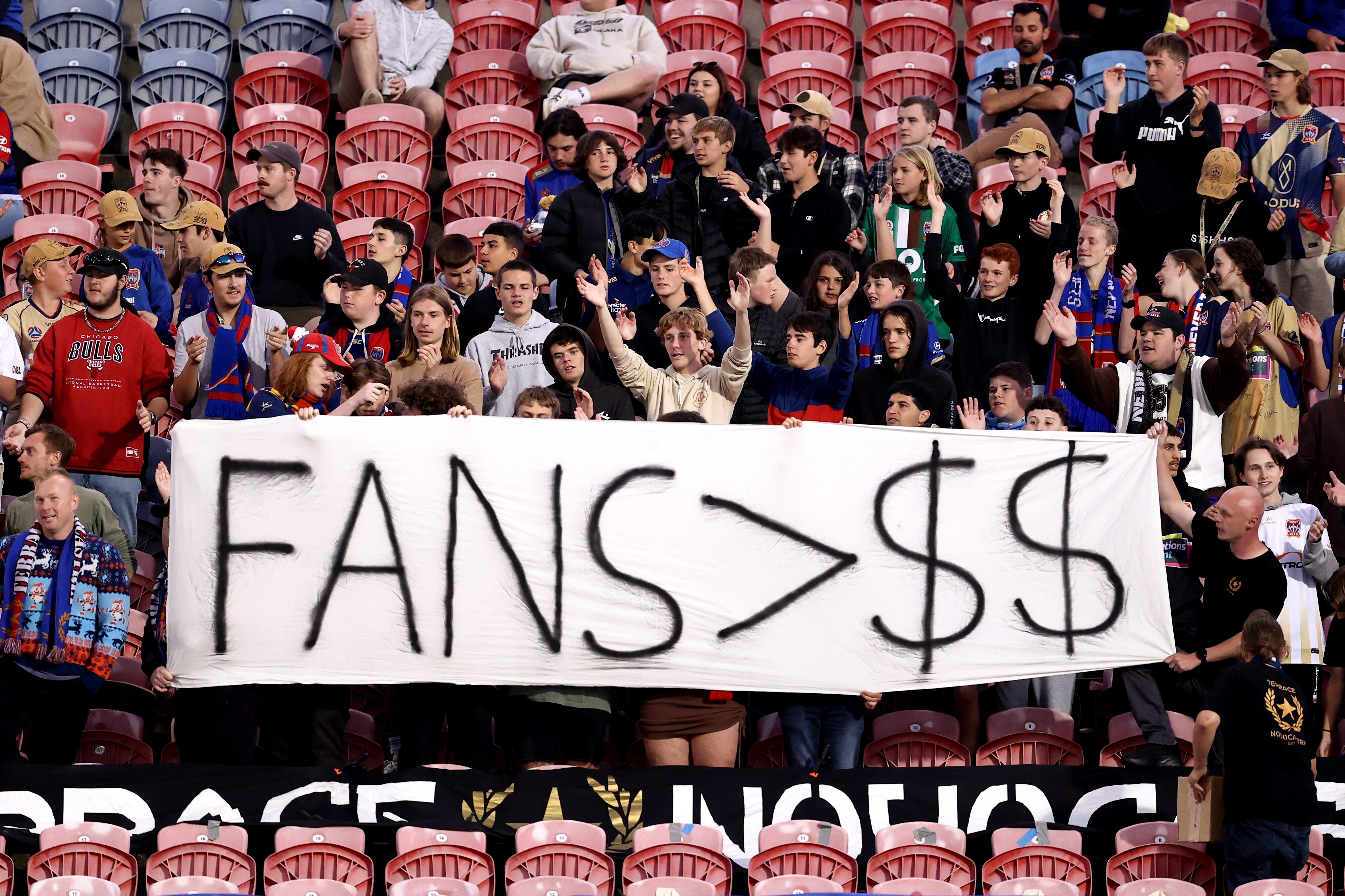 Fans Protest During A League Men Match In Newcastle As Grand Final Fallout Continues Abc News
